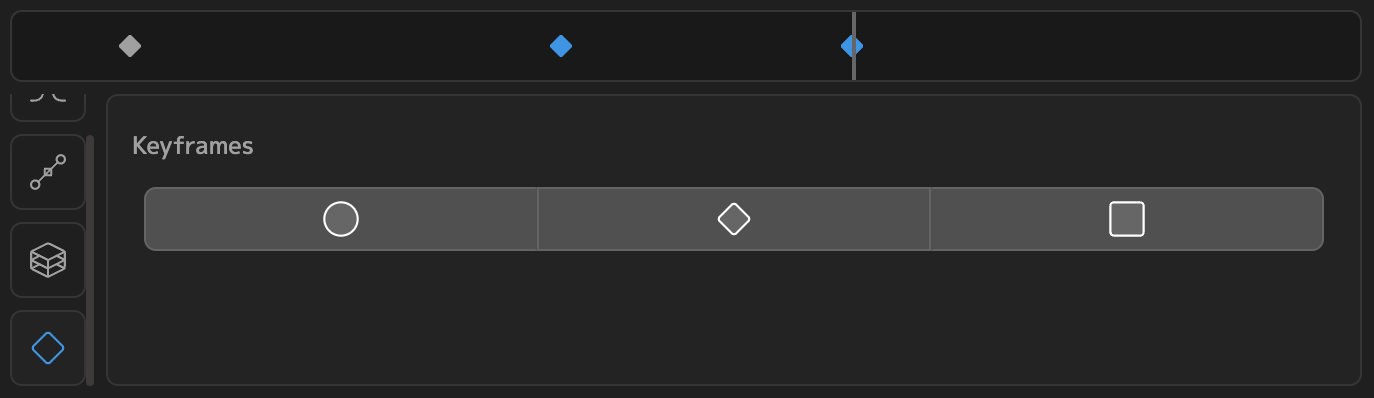 - The keyframes that are on the selected property will also appear in your panel. By default, none of the keys are selected. This means that any easing in the panel will apply to all of the keyframes on that property.