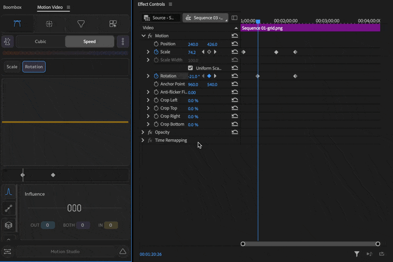 Once applied, you'll notice the interpolated keyframes added by Motion Studio: