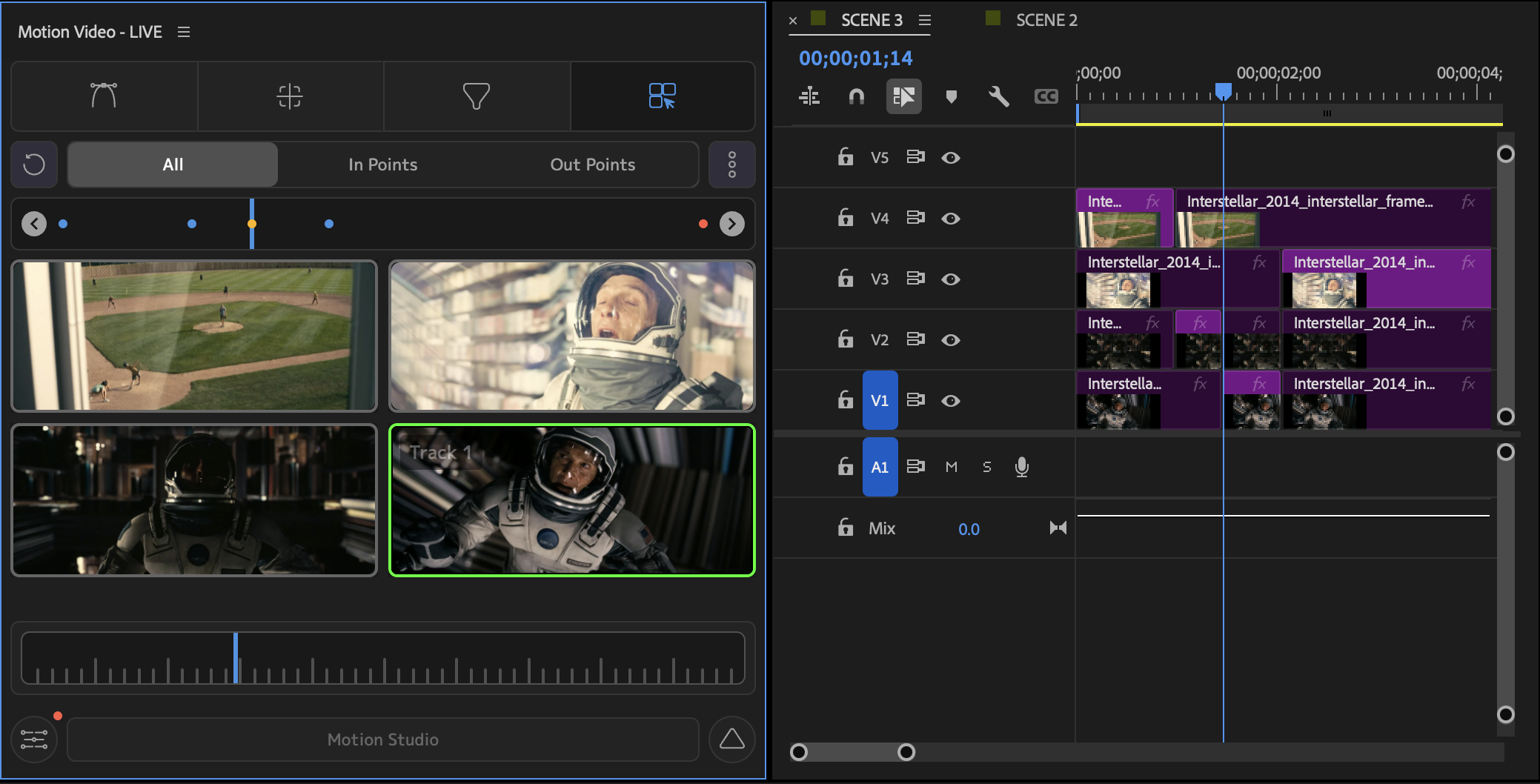 Below is a simple multi-cam edit sequence:
